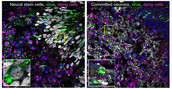 After infecting cerebral organoids with LACV, the researchers observed that the virus was more likely to kill neurons, and they also found that the immune response to the virus was weaker in those cells than in neural stem cells. The largest observed difference was in genes activated by interferon, which are important in protecting cells from viruses.
