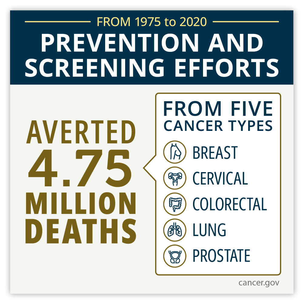 Improvements in cancer prevention and screening have averted more deaths from five cancer types combined over the past 45 years than treatment advances, according to a modeling study led by researchers at the National Institutes of Health (NIH). The study, published Dec. 5, 2024, in JAMA Oncology, looked at deaths from breast, cervical, colorectal, lung, and prostate cancer that were averted by the combination of prevention, screening, and treatment advances. The researchers focused on these five cancers because they are among the most common causes of cancer deaths and strategies exist for their prevention, early detection, and/or treatment. In recent years, these five cancers have made up nearly half of all new cancer diagnoses and deaths.