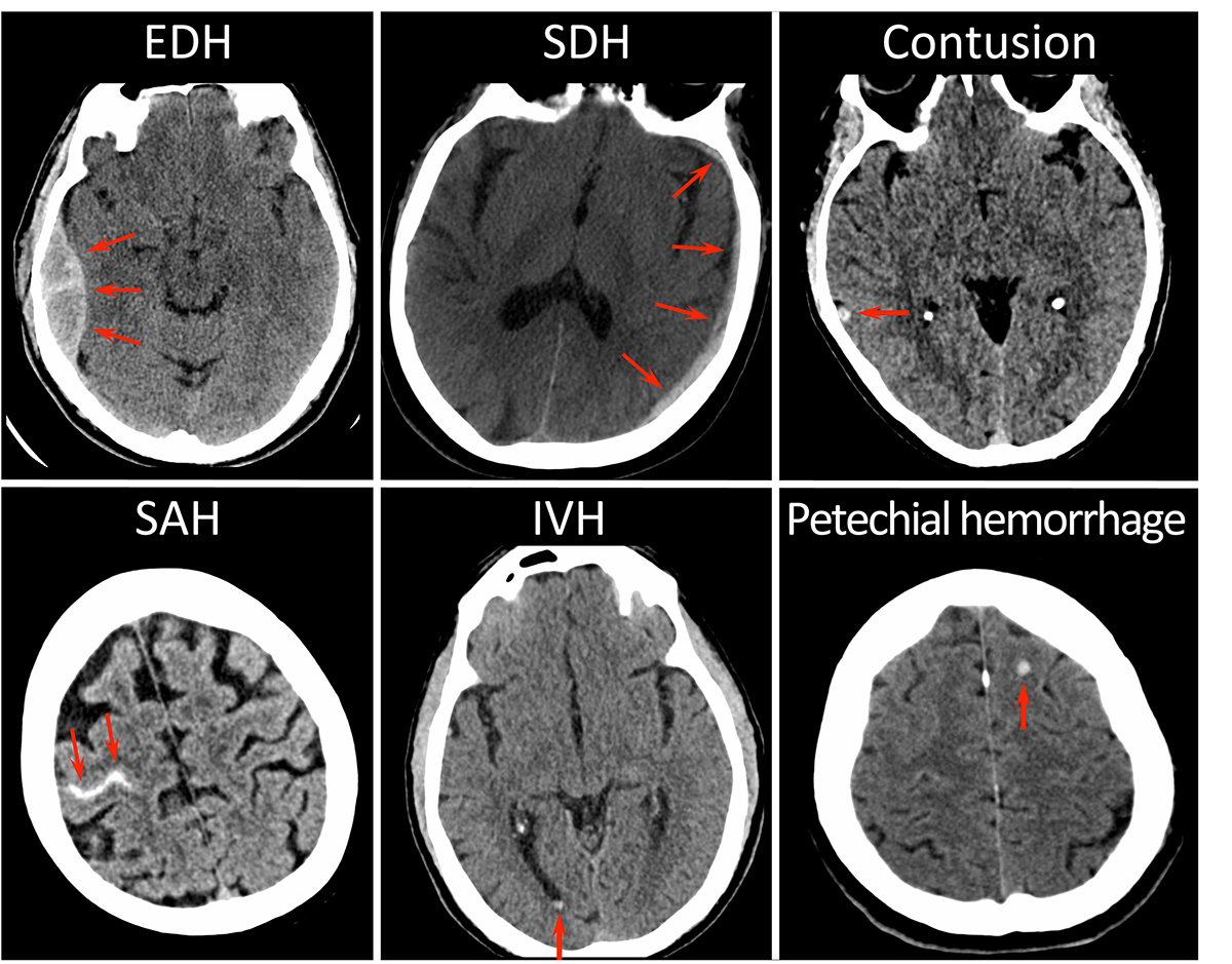 The researchers identified three distinct sets of patterns on the CT scans, indicating different types of damage after head injury which were associated with various outcomes. The results suggest that contusion (bleeding into brain tissue), subarachnoid hemorrhage (bleeding into the cerebrospinal fluid over the brain), subdural hematoma (bleeding between the brain and the thick covering over the brain), and intraventricular hemorrhage (bleeding into the fluid filled spaces in the center of the brain) were associated with worse outcomes 12 months after injury. Epidural hematoma, which describes bleeding between the skull and outer brain covering known as the dura, was associated with incomplete recovery at two weeks and three months, but was not linked to negative longer-term outcomes.